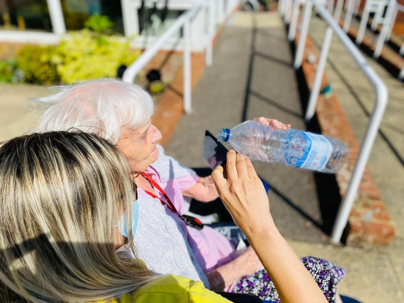 Activity Coordinator Jade and resident ivy from Saxonwood Care Home exploring a photo treasure hunt.